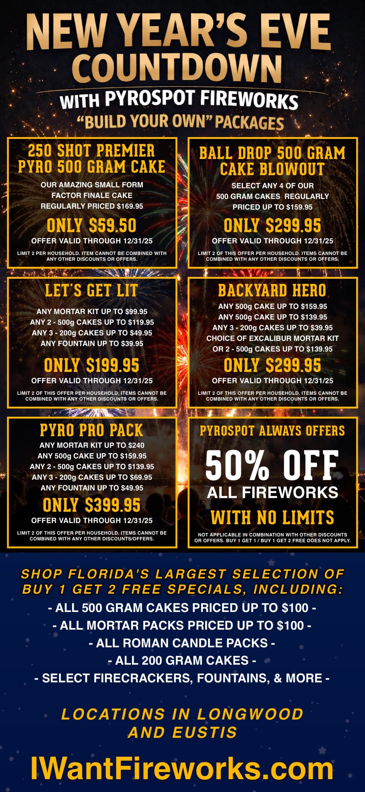 Your source for the best Fireworks from the biggest names in Pyro. Your Orlando Fireworks Store.